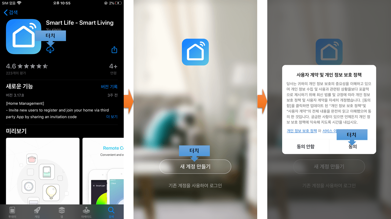 이제 스마트폰 어플(아이폰)과 연동을 해보도록 하자. 우선, 어플을 설치하고 계정을 만들어야 하는데 아래의 그림을 참고하자.