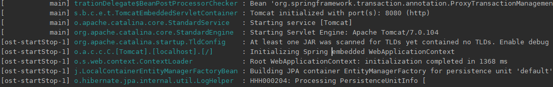 pom.xml과 코드를 변경하고 나서 실행을 하면 아래와 같이 톰캣 7 버전이 실행 되는 것을 확인할 수 있을 것이다.