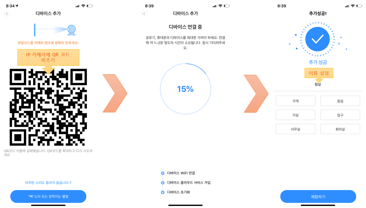 QR코드를 카메라가 볼 수 있도록 가까이 가져가면 자동으로 기기가 연결되고 추가에 성공하게 된다.