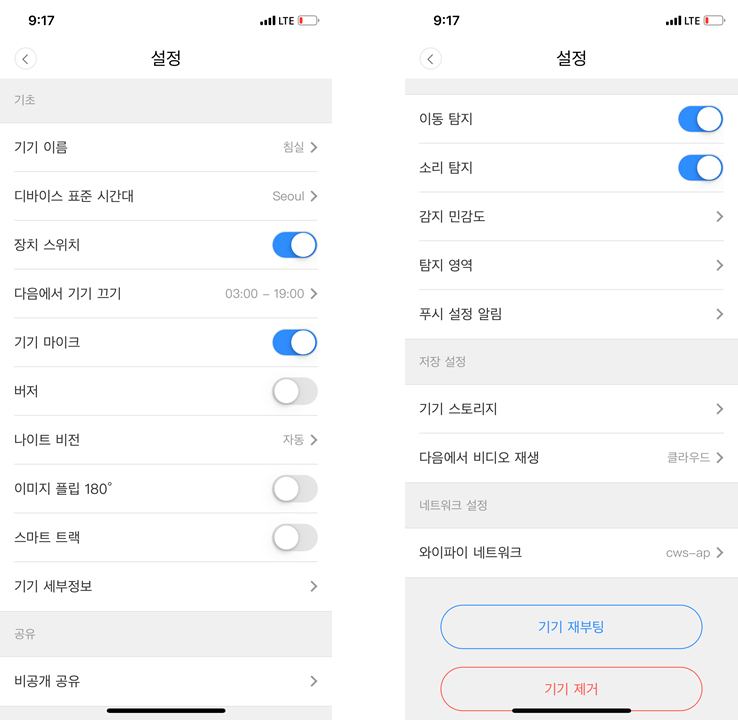 - 나이트 비전을 강제로 켜고 끄거나 조도 센서로 자동으로 동작하도록 설정할 수 있다.