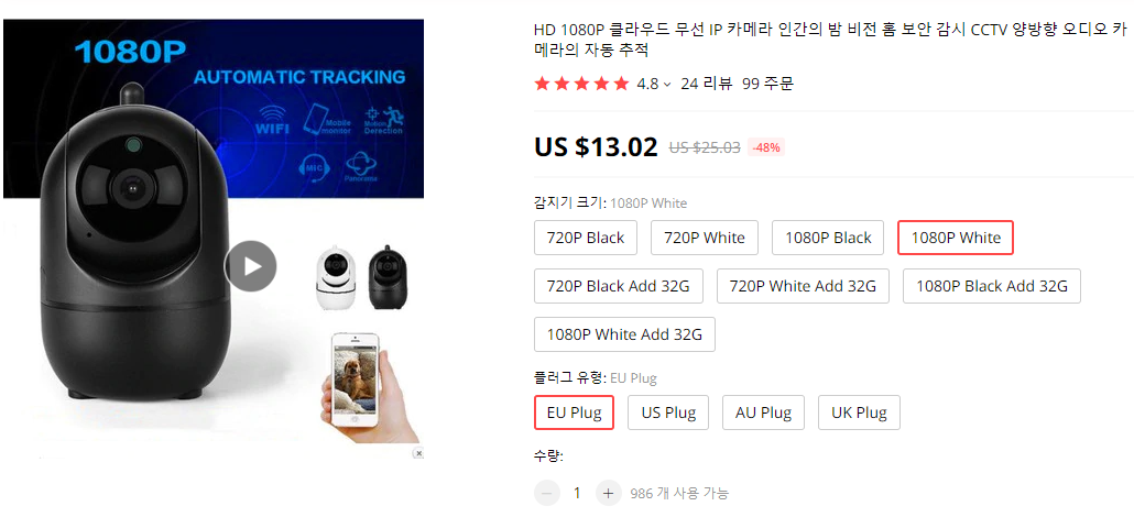 이러한 어플 기반의 CCTV를 탈피해서 최소한의 가격으로 내가 원하는 기능을 제공하는 IP 카메라를 찾아보게 되었고, 가성비에서 우수한 알리익스프레스를 통해서 적당한 녀석을 찾았다.