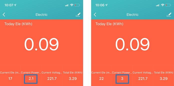 동작중인 상황에서의 소비전력을 측정해 보았다. 소비 전력은 Tuya의 스마트플러그를 통해서 측정하였으니 참고하기 바란다.