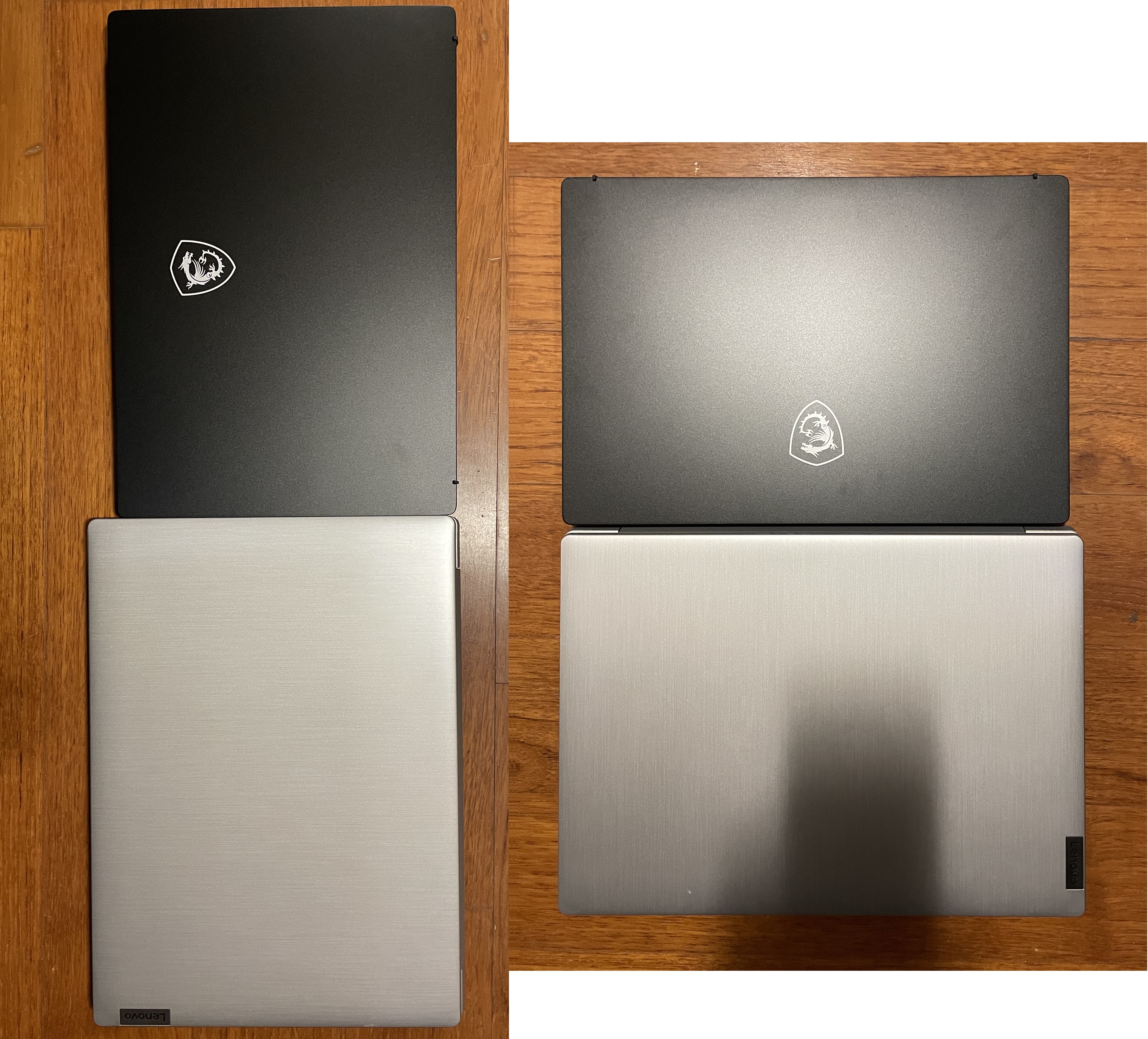 무게 1.3Kg대라 그런지 상당히 가볍고 휴대하기에도 좋을 듯하다. 14인치대의 보급형 노트북 중에서 1.3Kg 초반 무게는 MSI 모던14가 거의 유일하기 때문에 여기에 한 표를 주고 싶다.