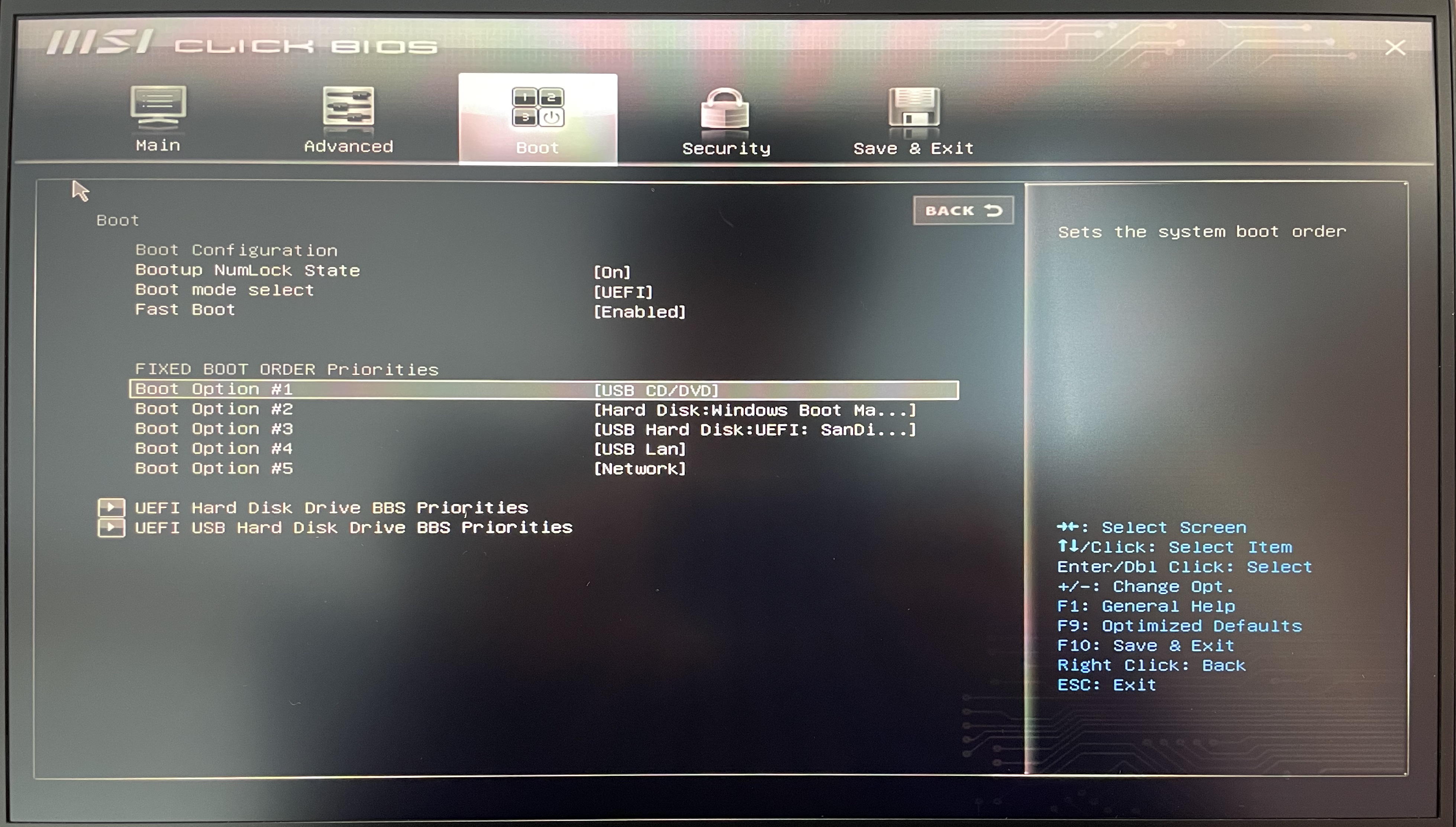 BIOS 모드에서 Boot 메뉴를 선택하여 부팅 순서를 변경해 주도록 하자.