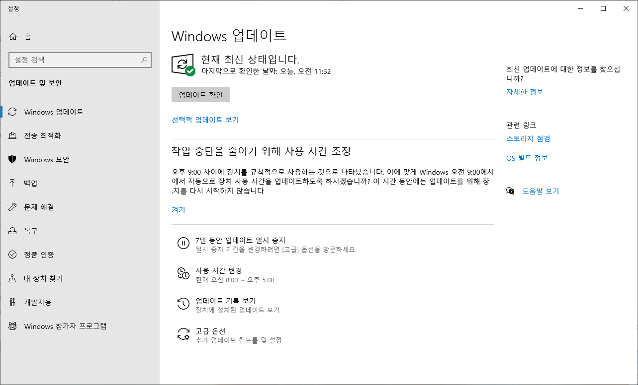 그리고 새로운 창이 뜨면, ‘업데이트 확인’을 클릭하여 업데이트를 진행하면 나머지 장치 드라이버가 모두 자동으로 설치된다.